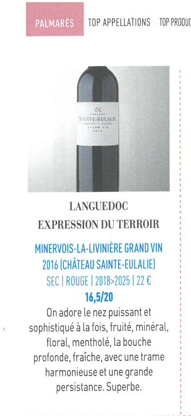 Dans l’encadré en fin d’article , 2 vins de SAINTE EULALIE sont cités parmi les 10 sélectionnés !
