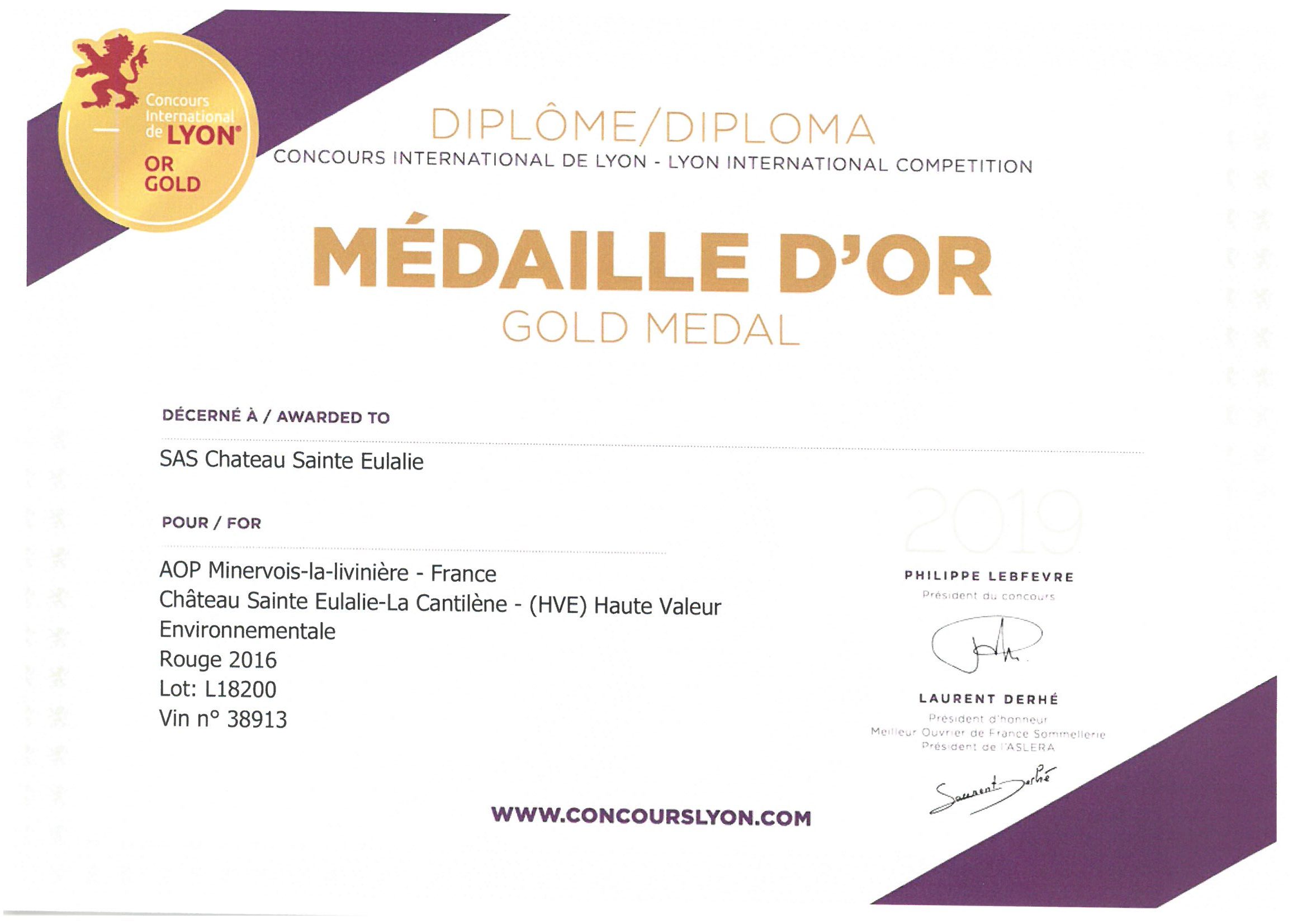 La CANTILÈNE 2016 vient d’obtenir la Médaille d’OR au concours international de Lyon 2019 !